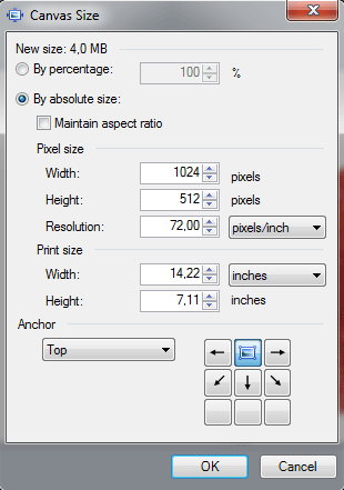 Tambah tinggi kanvas dengan mengkalikan 2 menjadi 1024 pixels.